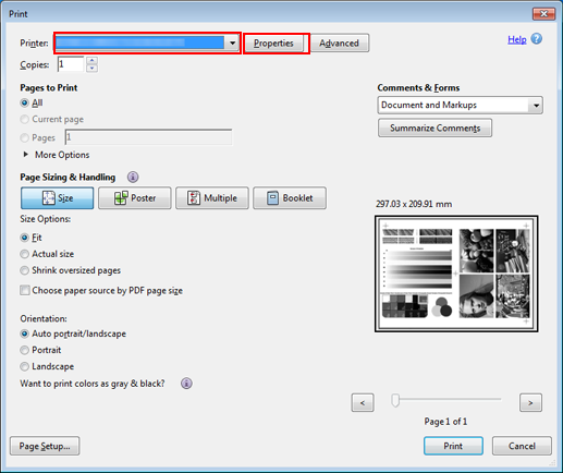 Sélectionnez l'imprimante à utiliser pour l'impression et cliquez sur Propriétés.