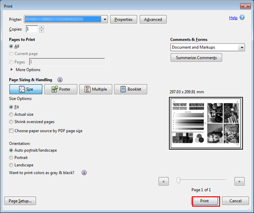 Ouvrez les données de l'original avec l'application et cliquez sur Imprimer dans le menu Fichier.
