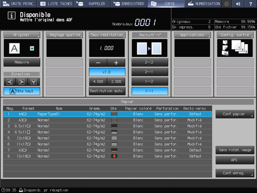 L'écran COPIE réapparaît. Le message Appuyer sur [Départ] pour numériser s'affiche dans la zone de message.