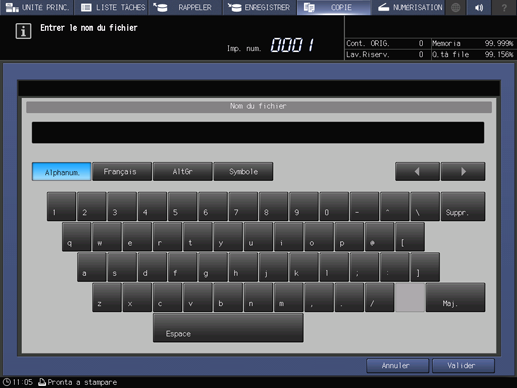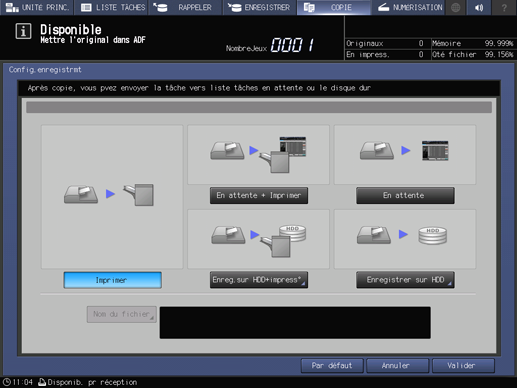 L'entrée d'un Nom du fichier n'est pas impérative. Dans ce cas, cette machine assigne automatiquement les quatre derniers chiffres de l'ID tâche à créer.