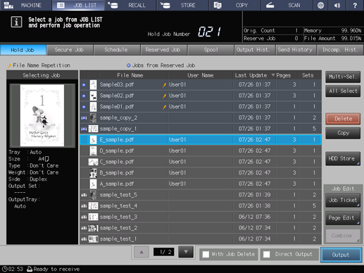 Explication supplémentaireMême si le nombre de copies entré est répercuté sur toutes les tâches sélectionnées, le nombre initial de copies spécifié pour la tâche en attente reste inchangé.