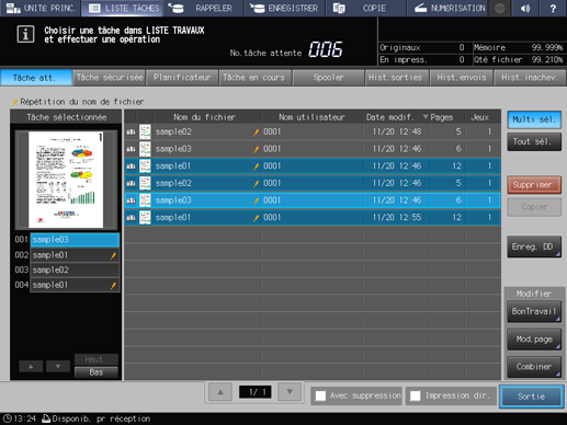 Explication supplémentaireAppuyez sur Multi sél. pour sélectionner plusieurs tâches.