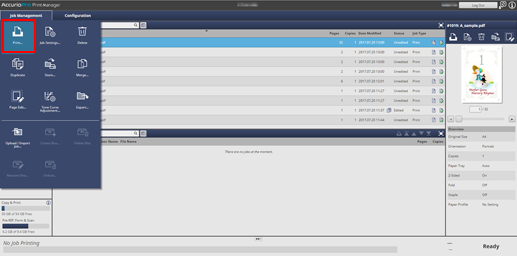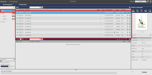 Gestion des tâches|Impression d'une tâche en attente : fonctionnement à partir de AccurioPro Print Manager