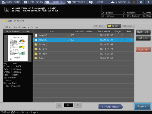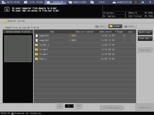 Si la tâche d'impression souhaitée se trouve dans le Dossier racine, sélectionnez-la dans la liste.