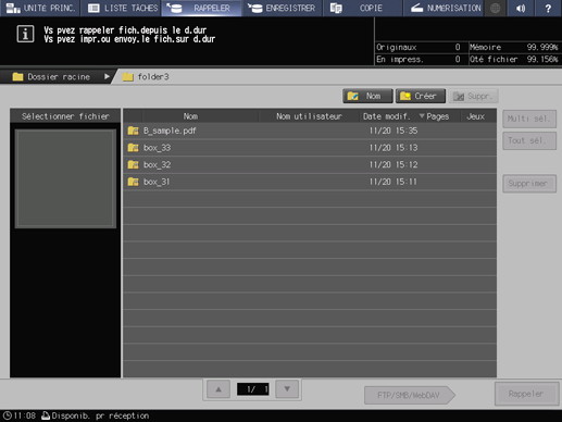 Lorsque la tâche d'impression souhaitée se trouve dans la boîte affichée dans le dossier, sélectionnez cette boîte, puis entrez le mot de passe attribué à la boîte. Sélectionnez la tâche d'impression souhaitée dans la liste dans la boîte.