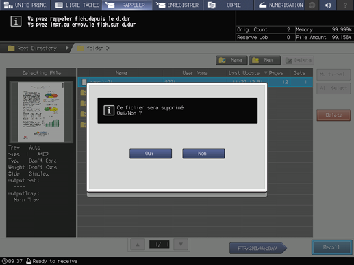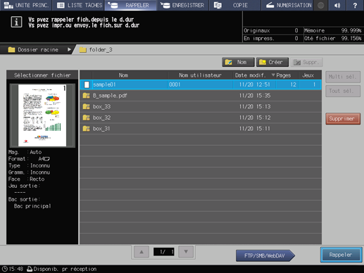 Explication supplémentaireSélectionnez le répertoire (dossier racine, dossier, boîte utilisateur) du disque dur où est archivée la tâche. Si le dossier ou la boîte est protégé(e) par un mot de passe, entrez le mot de passe.