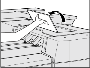 La courroie de transport du bac de sortie des rames doit être maintenue propre, sinon des salissures risquent d'être imprimées. Suivez la procédure ci-dessous pour nettoyer la courroie de transport du bac de sortie des rames.