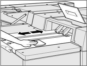 Explication supplémentaireSoulevez légèrement les deux courroies de transport avec les mains, puis tirez-les toutes les deux vers la gauche en même temps afin d'exposer les zones cachées.
