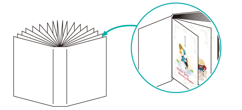 Impression des pages de corps en mode recto-verso et finition d'encartage des pages de corps dans les couvertures avec le thermorelieur. Vous pouvez sélectionner le mode couverture vierge qui utilise une couverture déjà imprimée et le mode Imprimer couverture 2 en 1 qui imprime une image de couverture en même temps.