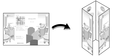 Impression recto-verso et finition avec une unité de pliage. Cette section explique l'exécution du pliage en Z, du pliage en trois et de l'encart à volet.