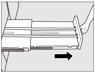 Tirez le bac de sortie papier de la piqueuse à cheval (voir Piqueuse à cheval SD-506 ou Piqueuse à cheval SD-506)