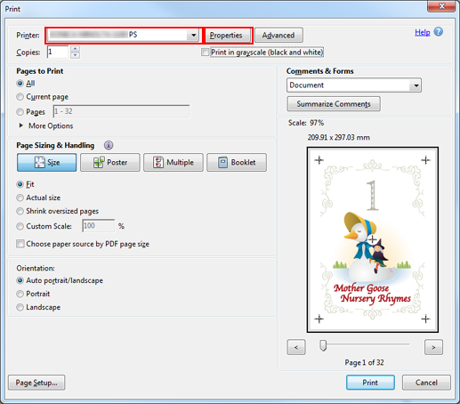 Sélectionnez l'imprimante à utiliser pour l'impression et cliquez sur Propriétés.