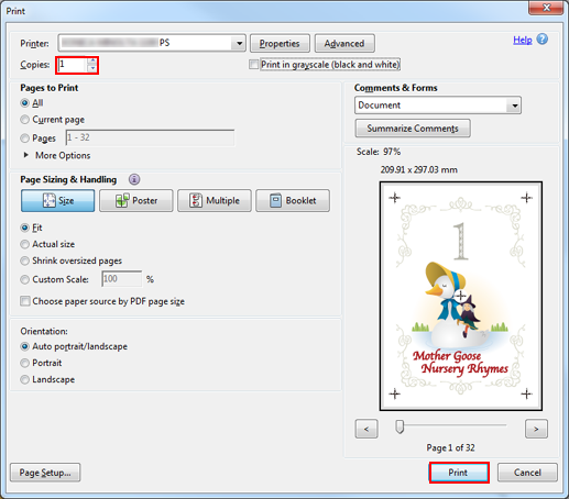 Sur l'écran Impression, entrez le nombre de Copies et cliquez sur Impression.