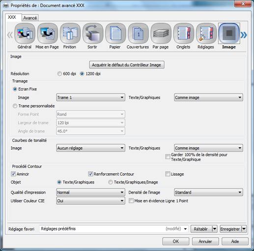 Vous pouvez définir une courbe de tonalité distincte pour Image et Texte/Graphiques.