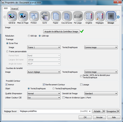 Une fois les différentes conditions des courbes de tonalité sont enregistrées dans le contrôleur d'image, vous pouvez rappeler ces courbes de tonalité enregistrées et les appliquer au moment de l'impression.