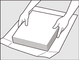 Ventilez la pile aux deux extrémités avant et arrière dans le sens d'alimentation, en la tenant comme sur l'illustration.
