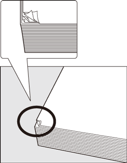 Vérifiez que la pile de papier ne présente pas de plis ou dommages, et enlever comme sur l'illustration ci-après toute feuille qui serait détériorée.