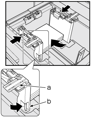 Explication supplémentaireÉcartez au maximum les plaques-guide latérales et la plaque-guide arrière tout en appuyant sur le levier de déverrouillage de chaque plaque-guide.