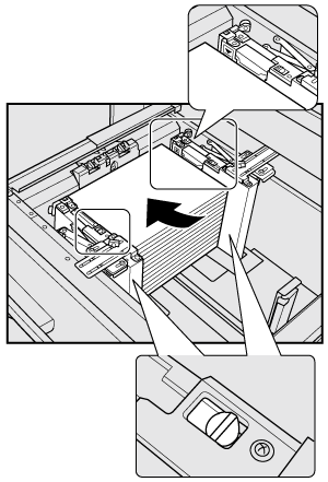 Assurez-vous d'aligner soigneusement la plaque-guide arrière sur le papier. Si un espace subsiste entre la plaque-guide arrière et le papier, la machine ne peut pas détecter correctement le format papier et il peut s'ensuivre des problèmes machine.