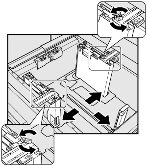 Explication supplémentaireTournez les deux boutons de fixation des guides latéraux des plaques-guide latérales dans le sens contraire des aiguilles d'une montre pour les desserrer.