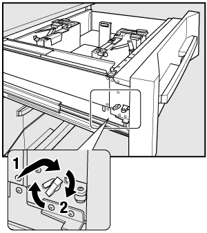 Explication supplémentaireIl n'est pas possible de tirer les magasins lorsque la machine n'est pas alimentée. Veillez à placer l'interrupteur secondaire sur Marche.