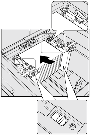 Assurez-vous d'aligner soigneusement la plaque-guide arrière sur le papier. Si un espace subsiste entre la plaque-guide arrière et le papier, la machine ne peut pas détecter correctement le format papier et il peut s'ensuivre des problèmes machine.