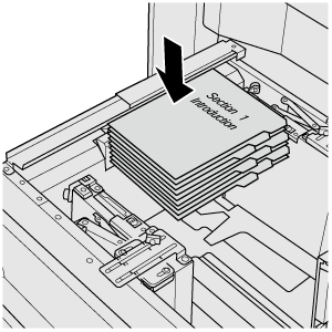 Exemple : 3 feuilles de papier à onglet sont insérées dans chacun des 3 jeux de finition (un total de 9 feuilles de papier à onglet)