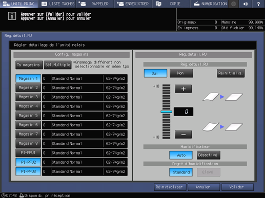 condition préalableLes réglages de détuilage mécanique et de type humidification sont disponibles pour tous les types de papier.