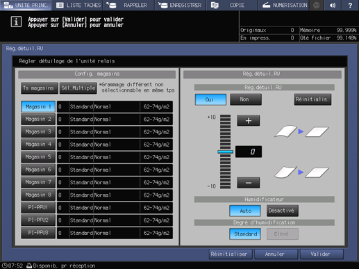 Explication supplémentaireVous pouvez modifier et appliquer la valeur du réglage de détuilage mécanique tout en sortant une tâche d'impression.