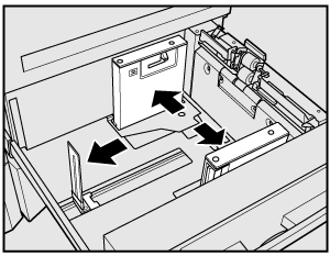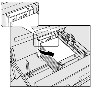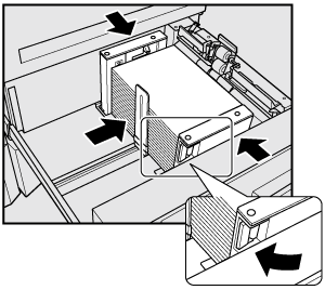Assurez-vous que les plaques-guide latérales et la plaque-guide arrière sont soigneusement alignées sur le papier. Si un espace subsiste entre la plaque-guide et le papier, la machine ne peut pas détecter correctement le format papier et il peut s'ensuivre des problèmes machine.