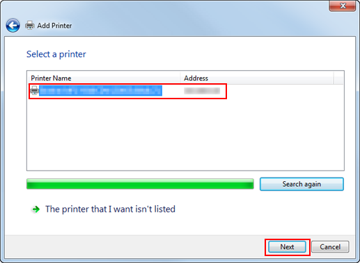 Explication supplémentaireLa recherche sur la liste entière des imprimantes peut prendre un certain temps.