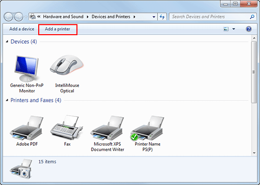 Sélectionnez Ajouter une imprimante sur la barre d'outils.