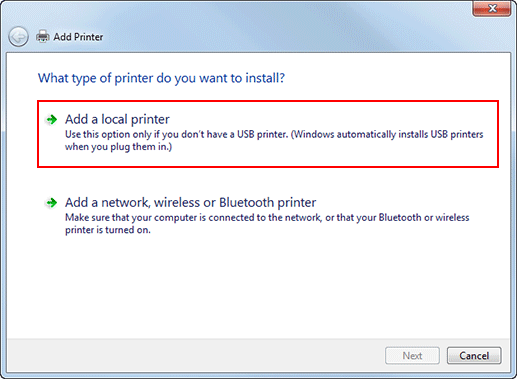 Cliquez sur Ajouter une imprimante locale.