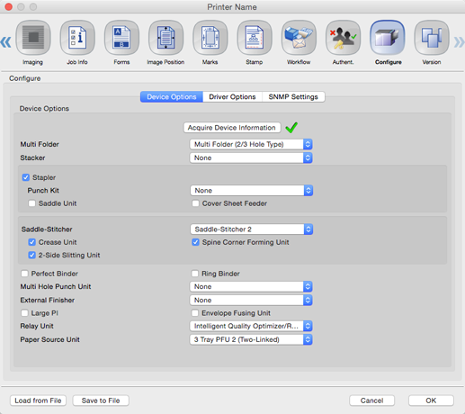 est affiché à la droite de [Acquérir Informations d'Options périphériques]. En cas contraire, cliquez sur [Acquérir Informations d'Options périphériques] pour acquérir les informations des périphériques en option.