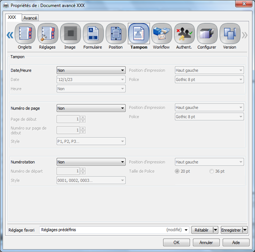 Numéro de page ![]() | Numéro de page | Non, Toutes les pages, Sauf couverture, Sauf couverture/dos | Pour imprimer Numéro de page, spécifiez Toutes les pages, Sauf couverture ou Sauf couverture/dos. |