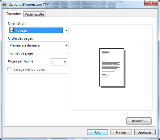 Vous pouvez définir l'orientation d'impression, l'ordre et le nombre de pages par feuille.