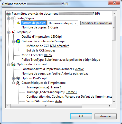 Niveau de langage PostScript | 1 à 3 | Définissez un niveau de langage PostScript. |