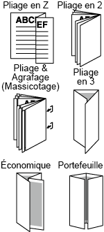 Pour utiliser la fonction Pliage, vous devez installer l'unité de pliage multiple, l'agrafeuse et le kit de piqûre en option.