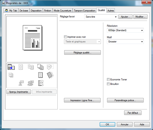 Sélectionnez Texte et graphiques ou Tout pour définir la zone de ligne fine.