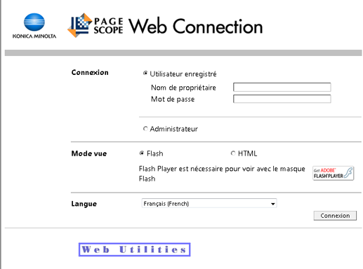 PageScope Web Connection propose le mode utilisateur ou le mode administrateur en fonction de la procédure de connexion.