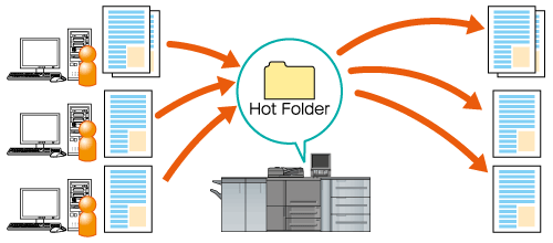 L'utilisation du Hot Folder de la machine permet d'imprimer un fichier PDF ou TIFF directement, sans démarrer d'application ou sans installer AccurioPro Hot Folder.