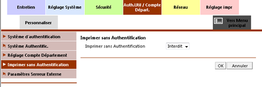 Sélectionnez Interdit ou Autoriser dans la liste déroulante Imprimer sans authentification.