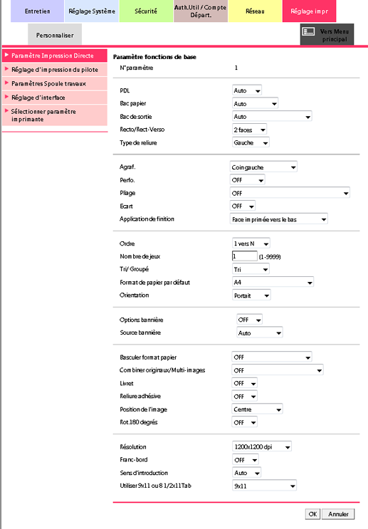 Vous pouvez aussi effectuer ce réglage sous Contrôleur sur l'écran UNITÉ PRINC. Pour en savoir plus sur le réglage, voir Paramètres fonctions de base.