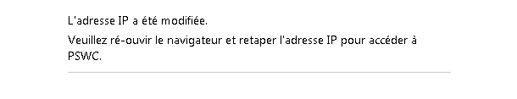 Si vous avez modifié l'adresse IP ou la méthode d'attribution IP, l'écran suivant s'affiche.