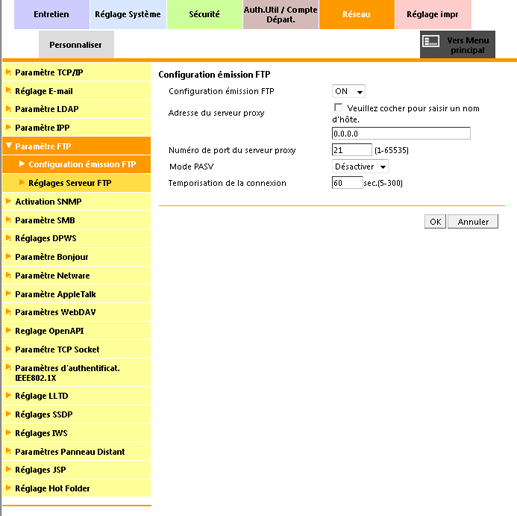 Cet écran vous permet d'effectuer la configuration de la transmission FTP.