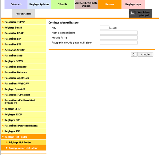 Cliquez sur OK. Un clic sur Annuler annule le réglage.
