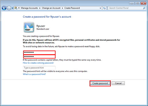 Entrez un mot de passe, puis entrez-le de nouveau et cliquez ensuite sur Créer un mot de passe.