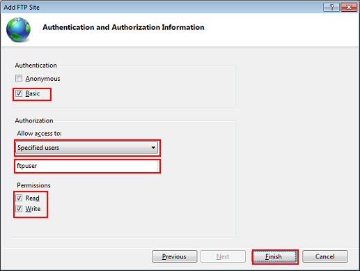 Explication supplémentaireSi le nom d'utilisateur est inconnu ou que le compte n'est pas créé, reportez-vous à Créer un compte utilisateur pour un site FTP.