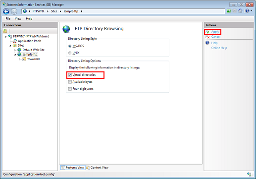 Cochez Répertoires virtuels dans Options de la liste de répertoires et cliquez ensuite sur Appliquer.