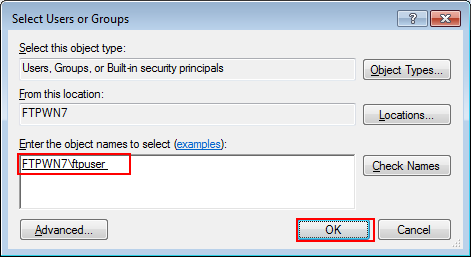 Entrer les noms d'objet à sélectionner | FTPWN7\ftpuser